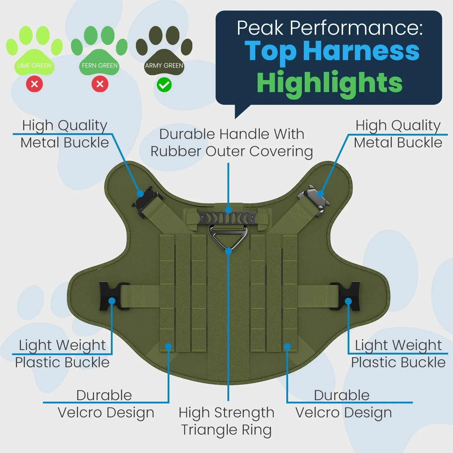 4. Gear up your furry friend with this Military Style Adjustable Tactical Dog Harness & Leash Set, designed for the toughest adventures. With a no-pull MOLLE vest, front leash clip, and a handle for added control, this harness is perfect for service dogs, working dogs, or hunting dogs. The Peanut Brown color adds a touch of style to this heavy-duty gear.