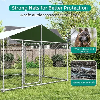 - Heavy-duty Dog Kennel & Durable Galvanized Metal: Our dog kennel outside is built with 1.25″ heavy-duty galvanized metal tubes and a premium anti-rust coating, ensuring exceptional durability and weather resistance. The custom chain link design creates a secure play area for your pet, offering peace of mind while they roam and exercise outdoors