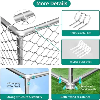 - Easy to Assemble with Clear Instructions: Includes 150 metal ties and 150 plastic ties, along with step-by-step installation instructions and a detailed accessory guide. Designed for hassle-free setup, this outdoor dog kennel is perfect for both DIY enthusiasts and first-time users. Simply follow the instructions for a quick and secure assembly