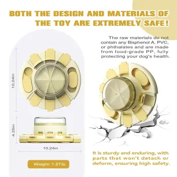 [Safe Design and Materials] This toy features a secure design, ensuring that all components remain intact and do not detach from the toy, eliminating the risk of accidental ingestion by dogs. You can confidently allow your dog to play with it. The product is made from food-grade ABS material and is free from harmful substances such as Bisphenol A (BPA), PVC, and phthalates, fully safeguarding your dog’s health. [Instructions for Use] Level 1 Difficulty: Place treats or kibble into the 8 compartments surrounding the toy. Six of these compartments are equipped with flip lids, while the other two feature sliding covers. Guide your dog to use their paws or nose to open or slide the covers, allowing them to access the treats as a reward. [Instructions for Use] Level 2 Difficulty: Step 1: Your dog needs to press the transparent top cover of the toy using its paw. This action distributes food into six treat compartments within the toy. Step 2: The dog can open the lids of the treat compartments with its nose to access the food rewards. This process engages both the mind and body, enhancing your dog’s intelligence and supporting brain development. [True Slow Feeder] The toy’s food storage compartment can hold up to 5.64 ounces of food, making it an ideal slow feeder for pets. It is designed to slow down eating habits, helping to correct rapid eating behaviors and protect your dog’s digestive health. By engaging in the process of obtaining food, the toy stimulates your dog’s mind, alleviates anxiety, and promotes emotional stability, allowing your dog to better integrate into family life.